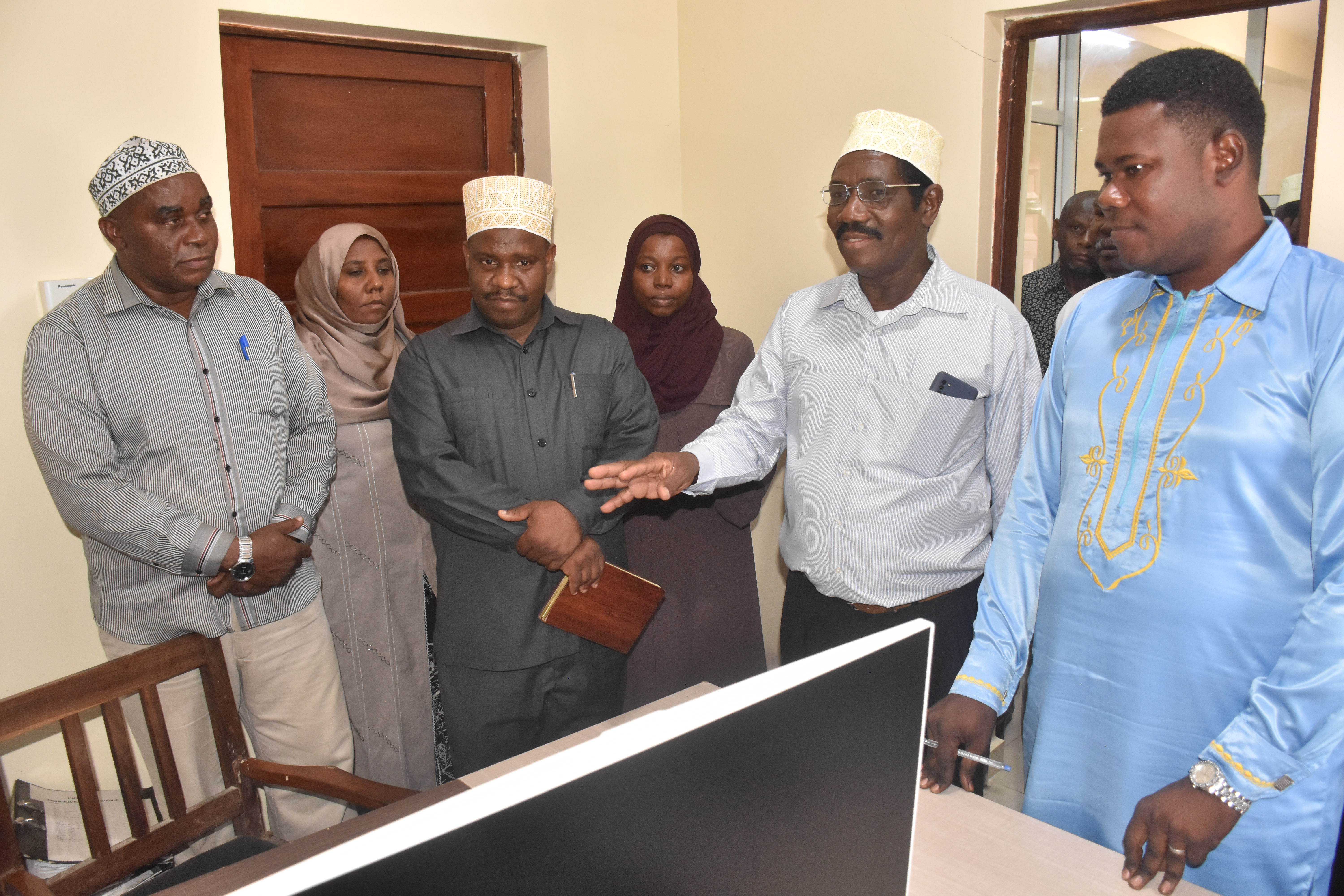 Akiiongoza Ziara hiyo Mwenyekiti wa bodi Ndg Sheha Makame Mussa akiambatana na wajumbe Bi Hurina Said Mohamed, Ndg Kombo Gora Haji, Ndg Mussa S.Maftah na Ndg Khatib S.Khatib.Wajumbe wameweza kujionea mafaniki  ikiwemo matumizi ya mfumo wa Ofisi mtandao(e-office) pamoja na changamoto zikiwemo ufinyu wa maeneo ya kuhifadhia nyaraka na kumbukumbu, uhaba wa vifaa vya kuhifadhia nyaraka na changamoto ya huduma ya mtandao, hususan kwa matumizi ya mfumo wa e-office.